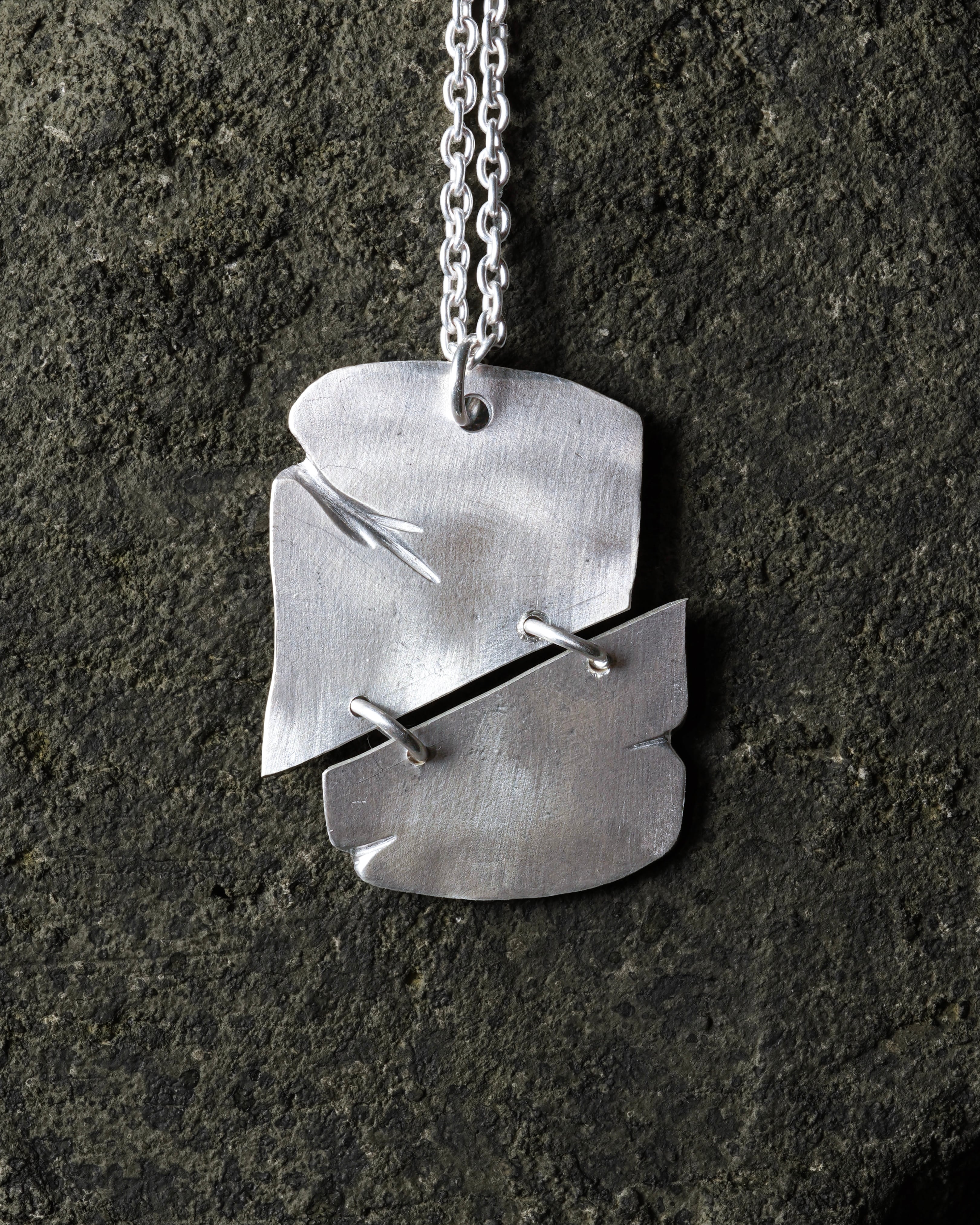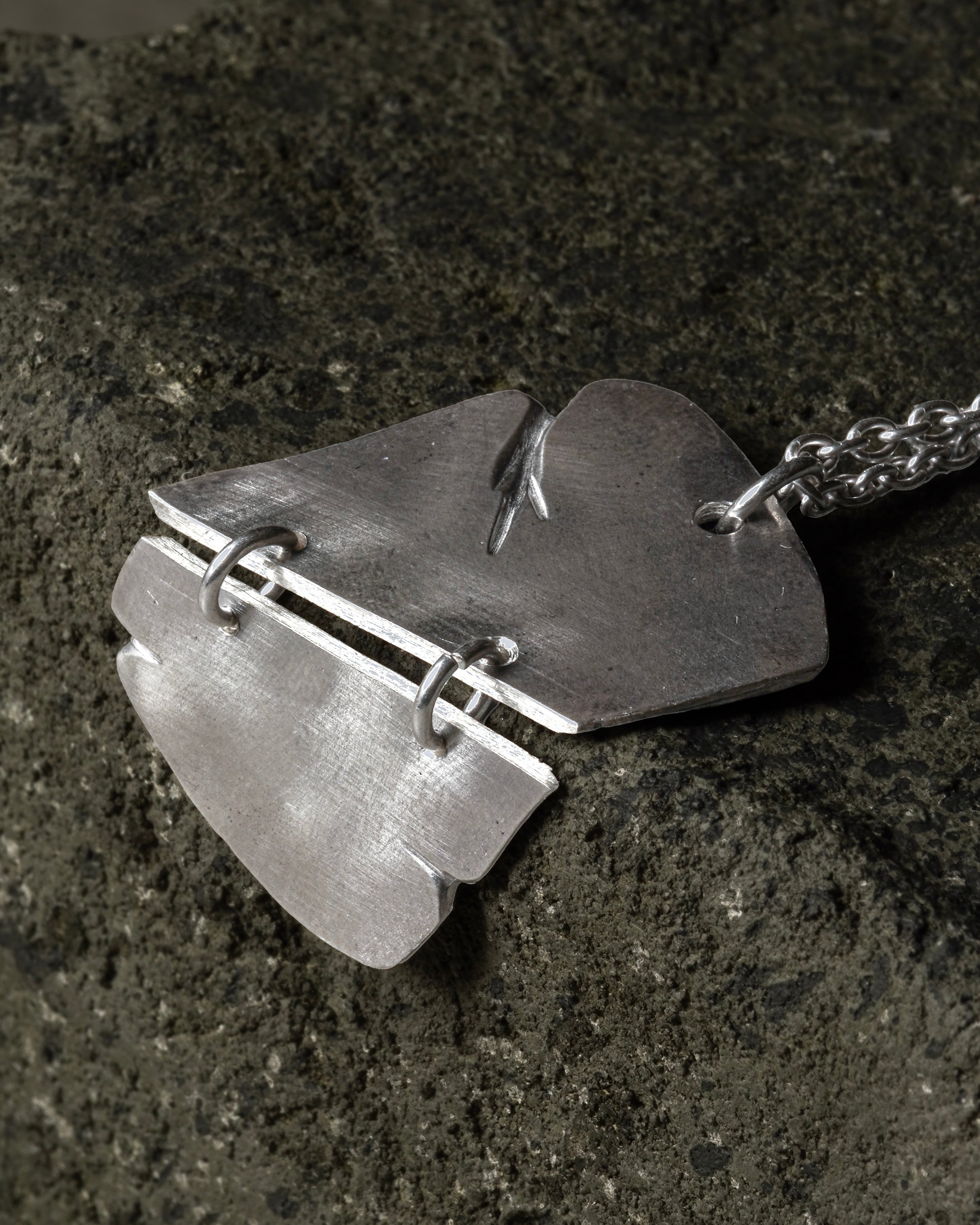 銀の表面に刻まれた傷や燻しは、時とともに表情を変え、身につける人の首元で独自の存在感を放ちます。