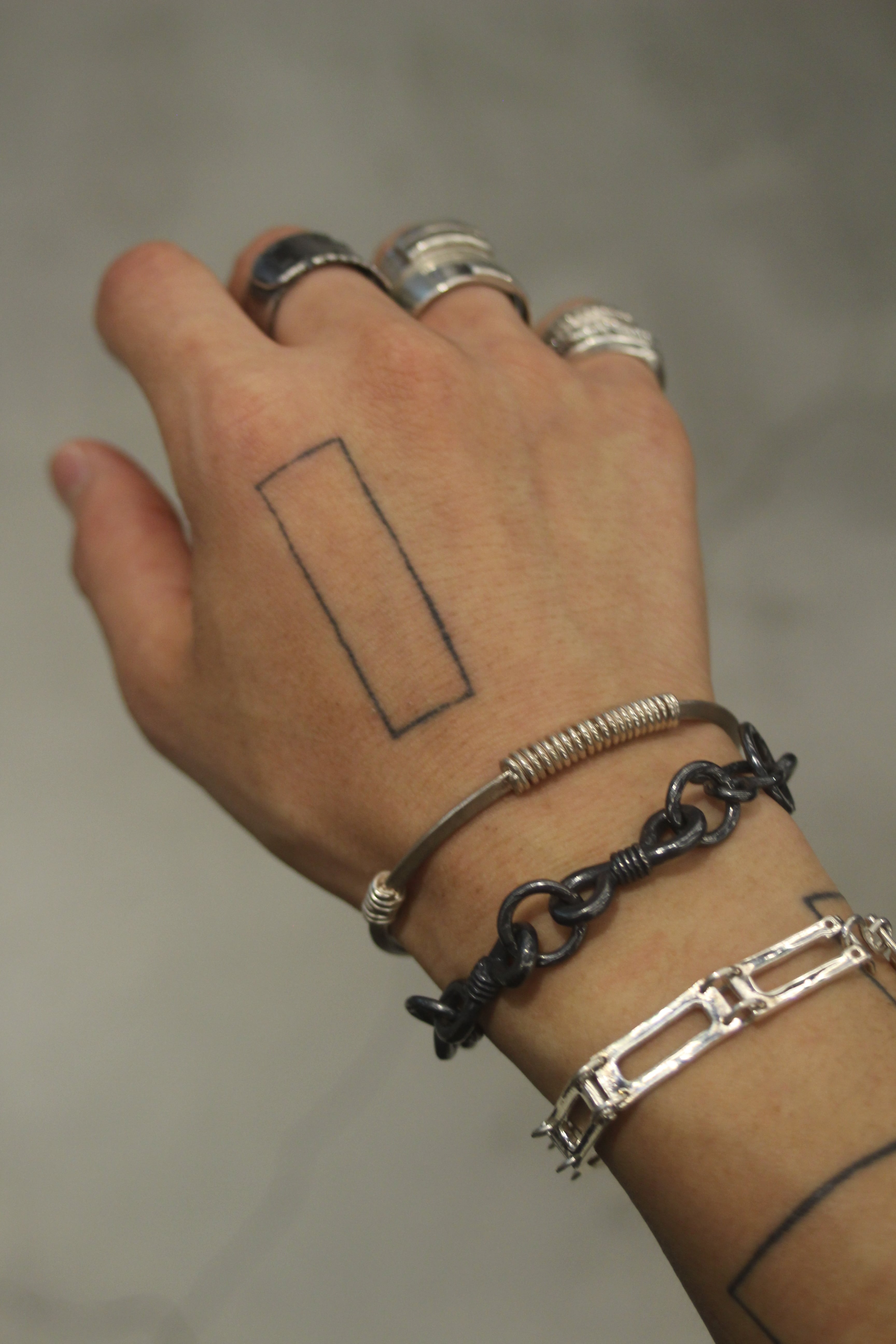 > gifthandのバングルは、無骨で力強いシルエットが特徴です。