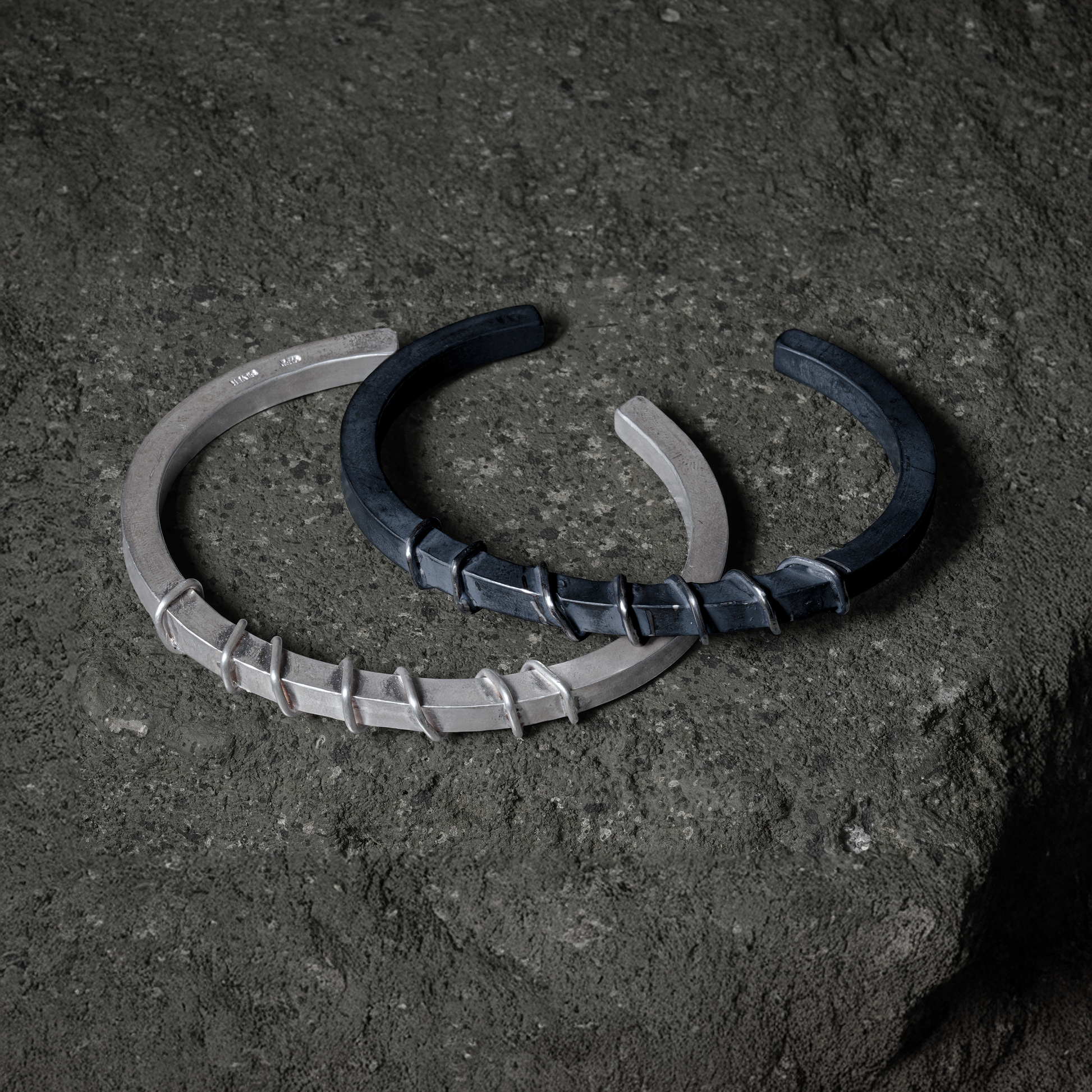 > Gifthand bangles are characterized by their rugged and powerful silhouette.