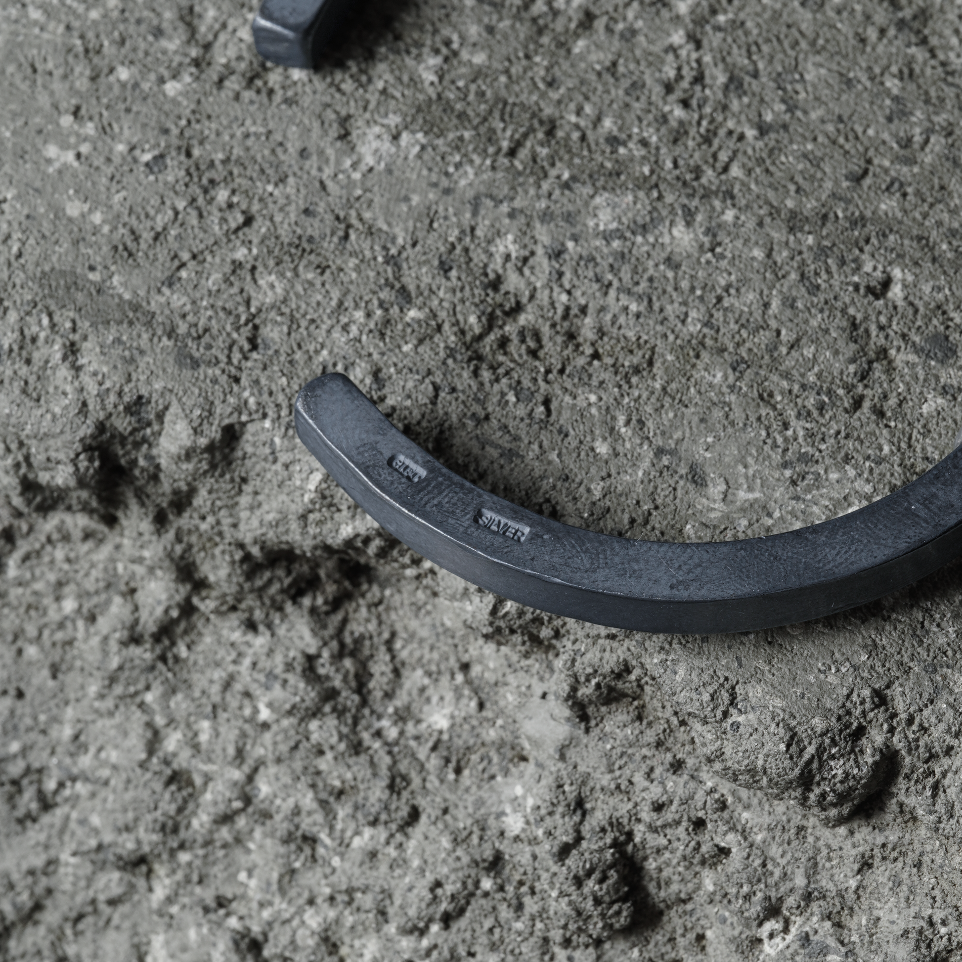 The marks of hammering and the shade of the smoke vary from piece to piece, and the more you wear it, the more the silver-specific aging process will appear, developing a one-of-a-kind look.