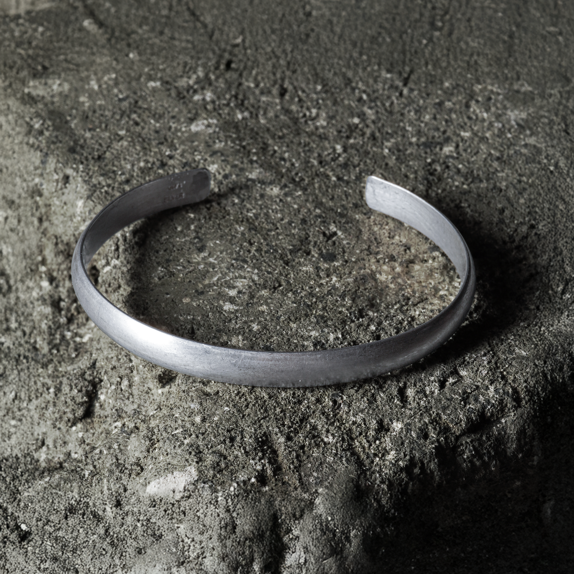 The marks of hammering and the shade of the smoke vary from piece to piece, and the more you wear it, the more the silver-specific aging process will appear, developing a one-of-a-kind look.